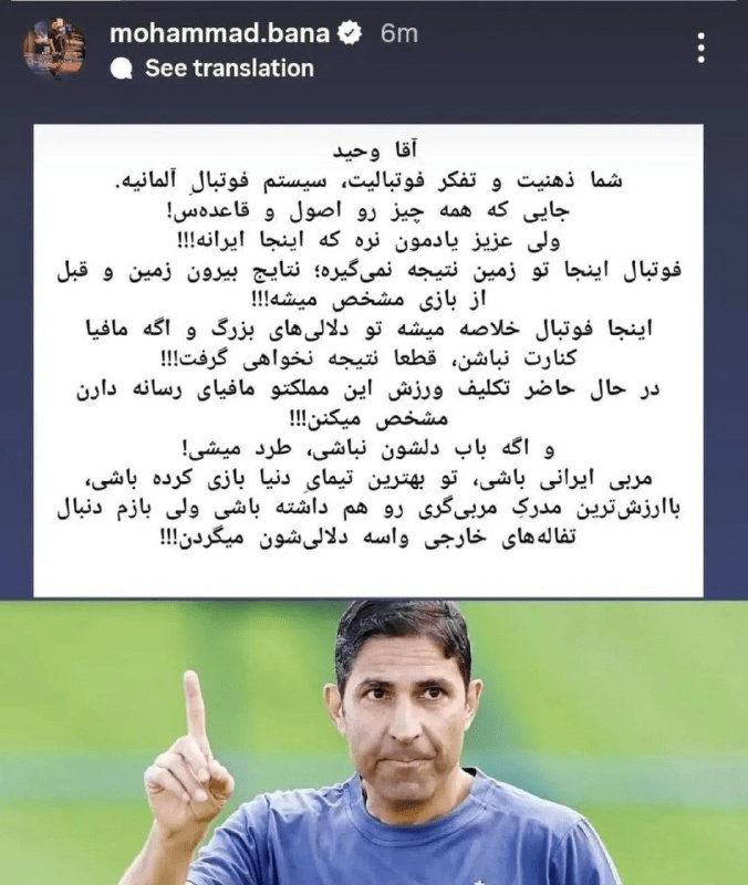 عصبانیت محمد بنا از نتایج ضعیف پرسپولیس: نتایج را مافیا رقم می زنند آقا وحید!