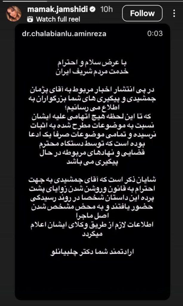استوری جنجالی نگار فرهمند همسر سابق پژمان جمشیدی در واکنش به اتهام تجاوز